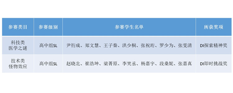 自9月份DI美国总部发布赛题以来,bg真人试玩的20多名同学积极备战,科技类(B)团队因“团队合作及突出问题解决能力表现优异”被授予“DI探索精神奖”;工程类(E)团队因高中组别即兴挑战得分排名第1被授予“DI即时挑战奖”。以下为获奖同学名单,向他们表示祝贺。