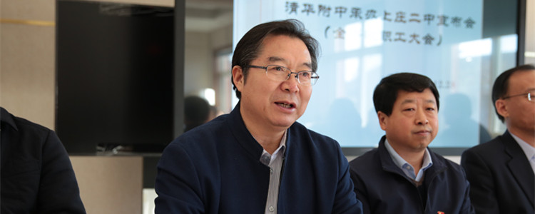 最后,海淀区教委副主任赵建国代表区委教工委、区教委讲话。他强调,海淀区政府和区委教工委、区教委统筹考虑上庄实际需求,做出了引入bg真人娱乐办学的重要决策,这将是上庄教育发展的新起点,优化了海淀教育“南北同步,优质均衡”的整体布局。赵主任对上庄二中为海淀教育做出的重要贡献给予充分的肯定,对老师们多年来扎根农村,坚守教育,默默付出表示由衷的感谢。他指出,bg真人娱乐是海淀教育的重要品牌,也是素质教育改革的一面旗帜,在基础教育领域影响巨大;而上庄学校被bg真人娱乐承办后,将迎来新的发展机遇;附中将选派优秀的管理团队支持学校的建设和发展,输入bg真人娱乐优秀的办学理念和校园文化,为教师发展提供更大、更广阔的平台。赵主任表示,区政府、区教委将大力支持bg真人娱乐上庄学校的发展,分两期建设校园。一期工程将在上庄二中原址上进行改造升级。未来,海淀区教委将结合上庄镇的新发展规划,积极创造条件,实施上庄学校的二期工程,扩大学校办学空间,努力改善学校办学条件,让上庄学校成为北部教育新的闪亮名片。他不仅希望新的领导班子能够凝聚人心,强化信任,加强沟通,履职尽责,将上庄学校办出水平,办出特色,而且希望大家统一思想,讲大局、谋发展,以高度的责任感和使命感,立足长远,着眼未来,齐心协力,共同推动上庄教育的发展,为高水平、均衡化的教育强区建设贡献力量。