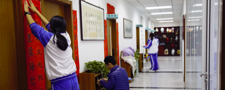 “贴春联、迎新年”是中华民族的传统习俗。在辞旧迎新之际,bg真人试玩同学们自愿报名参与张贴春联的活动。他们将饱含附中学子美好祝愿的春联张贴至诚志楼、教学楼及班级门前。翰墨飘香的春联,为bg真人试玩带来了一派喜庆吉祥。