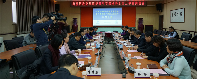 12月20日上午,海淀区教育委员会与bg真人娱乐签署承办上庄二中协议仪式在bg真人娱乐培训楼一层会议室隆重举行。出席本次签约仪式的领导有清华大学党委常务副书记姜胜耀,海淀区副区长刘圣国,海淀区教委主任王方、副主任赵建国,上庄镇党委书记刘涵、镇人大主席李志刚,bg真人娱乐校长王殿军、党委书记方妍以及区教委相关科室负责人、上庄镇相关领导、bg真人娱乐相关干部共二十余人。签约仪式由海淀区教委副主任赵建国主持。