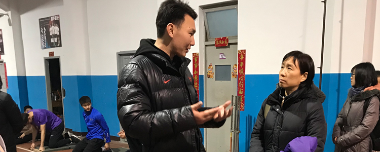 离开校史馆,参观一行来到了清华大学东大操场运动员训练基地。首先,由马班教练李光明老师向大家介绍了附中田径运动员的每天训练项目和强度。然后,党员老师们来到了室内训练场地看望正在训练的附中运动员们,仔细聆听李光明老师和陈广老师介绍有关各种器材的训练功能及使用方法。下午5点,正值田径运动员训练时间,李光明老师耐心向老师们介绍了运动员们正在训练的项目和目的。党员老师们也和几位特长生们进行了简单的交流。