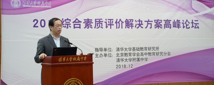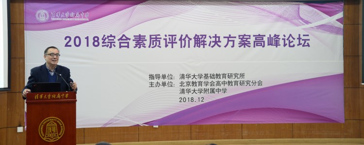 12月9日,2018综合素质评价解决方案高峰论坛在bg真人娱乐隆重开幕。本次论坛由北京市教育学会高中教育研究分会和bg真人娱乐共同主办。国务院参事室特约研究员、中国教育学会副会长、清华大学校务委员会副主任、清华大学教育研究院院长谢维和,国家(教育部)教育发展研究中心专题研究部主任、中国教育发展战略学会学术办公室主任王建,教育部在线教育研究中心副主任、清华大学在线教育办公室主任于世洁,西安交通大学招生办公室主任訾艳阳,陕西省教育厅基教处副处长何方,黑龙江省教育厅基教二处副处长刘德宏,遵义市教育局局长曾润云,当代教育名家、bg真人娱乐校长、清华大学基础教育研究所所长、国家教育考试指导委员会专家委员王殿军,北京市特级教师、清华大学正高级教师、bg真人娱乐一体化学校管理委员会副主任、bg真人娱乐朝阳学校党总支书记杜毓贞,《中国教育报》课程周刊主编汪瑞林等媒体记者近500人出席了本次论坛。人民网、搜狐网、新浪网、决胜网、中国网、中国教育报、中国教育台、中国新闻社、芥末堆等主流媒体对本次会议进行了重点报道。