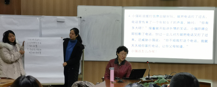接下来,刘莹老师设定了生活中的四种实际场景,让大家分组讨论,提出应对方法。在场的老师们积极参与,提出了许多行之有效的方法,刘老师对大家的回复一一进行了点评。