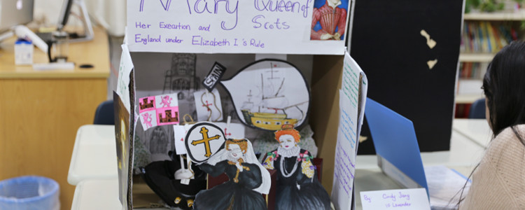 在历史日当天,同学们在各个教室参观、欣赏、学习同伴们的作品,互相讨论历史事件的影响。教室里摆满了同学们的作品。从特洛伊木马、西班牙战争、伽利略与宗教的思想冲突、玛丽皇后之死、民权运动、偷袭珍珠港、柏林墙的倒塌到最近发生的中美贸易战、中国房价攀升……作品话题之广泛、思想之深刻令人赞叹。通过历史研究,同学们不仅仅提高了学术水平,更积累了人生的智慧。