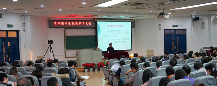 彭林教授从文化的分类及其意义入手引发全体听众开启对文化内涵的哲学思考。随后,报告以契丹族的消亡,失落的古代埃及、古巴比伦文明等例子阐释了文化是民族存亡之根的重要性,并重点介绍了中华文化在历史上几经危机成为至今世界上屈指可数的原生文明的过程。几千年的中华文明的伟大之处让老师们油然而生骄傲和自豪,近代出现的一些文化自戕现象激起大家的愤慨和担忧。报告高屋建瓴,史料翔实,思想深刻,振聋发聩,使老师们深深的感受到中华文化与民族命运息息相关,我们只有进一步坚定自己的文化自信,才能获得实现中华民族伟大复兴的更基本、更深沉、更持久的精神力量。