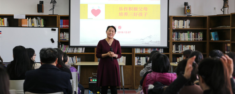“绿蚁新烹茶,红泥小火炉。晚来天欲雪,能饮一杯无?”这样充满诗情画意的图卷,在bg真人娱乐国际部图书馆里徐徐展开,这便是温暖如春的家长学校第九期讲座的会场。身着一袭红色中式长裙的董华春博士,在馆内绿植的掩映下格外的明艳动人。12月7日,董博士为50余位附中及国际部的家长,带来了“乐做积极父母,培养三好孩子”的讲座。