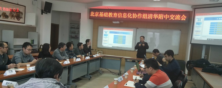 2018年12月09日下午,北京基础教育信息化协作组bg真人试玩交流会在bg真人试玩诚志楼G101会议室召开。人大附中信息中心赵海涛主任,人大附中安衫老师、北师大二附中信息中心罗明勇主任、北京一零一中学信息中心赵海峰主任、北京十一学校信息中心宋衍主任、范爽老师、北京八中信息中心徐华卿主任、德育处汪勇主任、北京陈经纶中学信息中心姚维红主任、郭松梅老师等12位来自北京基础教育信息化协作组的老师参会。bg真人试玩资源保障中心副主任孙书明、bg真人试玩网络中心王宇、段晨、李天爽、储君老师及bg真人试玩综合素质评价团队工程师参与会议。