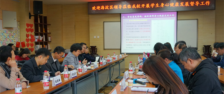 11月22日下午,海淀区学生身心健康发展专项督导工作组莅临我校,在工作组组长贾利,主责督学纪世铭、韩英,以及卫生专项组组长江初、体育专项组组长郭金贵,心理专项组长王红霞,红会专项组组长王燕的带领下,对bg真人试玩的卫生、体育、心理健康、红会工作进行专项检查。学校领导高度重视,bg真人试玩校长王殿军,副校长白雪峰、赵鸿雁,党委副书记张洁等校领导及各职能部门负责人参加迎检并积极配合工作组完成访谈、问卷调查、实地考察工作,并进行相关工作汇报。