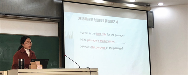秦唯老师代表高三英语备课组做试题分享。她从题目立意的角度分,呈现了最用心的完形填空、最具现实意义的七选五、最清新的记叙文、最胸怀天下的说明文和最理性批判的议论文。