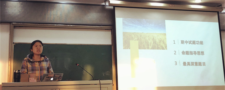 首先,朱莹老师从宏观角度上对中、高考的命题基调进行了分析和阐述。接着,各备课组的教师代表就本年级的期中考试好题赏析和特色活动进行了分享。