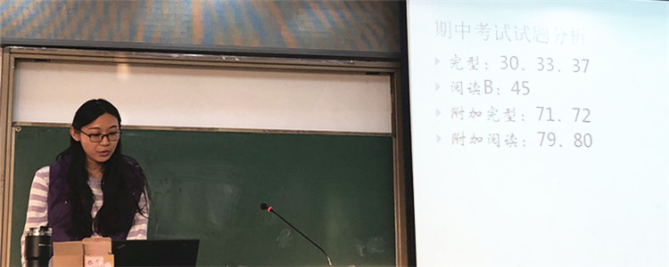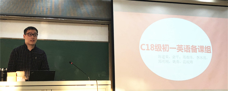 郅明刚老师代表初18级初一英语备课组就完型填空的命题思路进行了分享。作为最具考点效度的题型,完型填空从单词、词组、句子和语篇层面进行考察,通常包括熟词僻义、固定搭配和主要内容等考点。最后,郅老师分享了初一英语备课组丰富多彩的学科特色活动。
