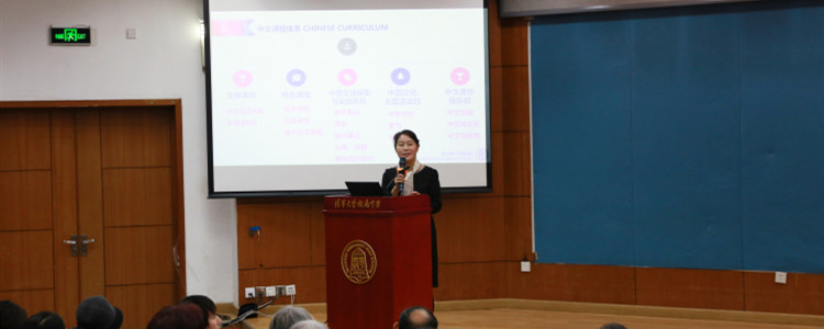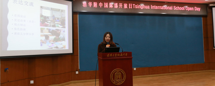 随后是小学家长们感兴趣的“中文课程介绍”环节。小学语文教师李京京老师向家长们介绍了小学语文课程设计、教学目标、教学活动以及中英双母语培养的教学理念。
