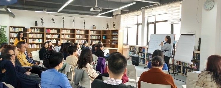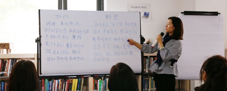 11月2日的午后,阳光正好,在bg真人娱乐国际部图书馆安静的一角,家长学校第八期讲座在此举行。温婉知性的张然老师正带领50余位家长,用体验式教学的方法,学习“正面管教”的一系列理念和应用。