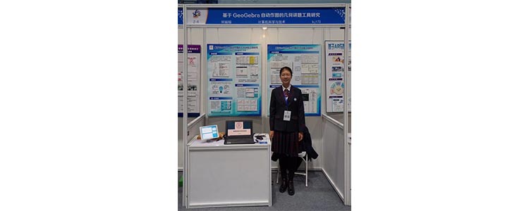 何婉榕的参赛项目为《基于GeoGebra自动作图的几何讲题工具研究》,辅导教师为周建军,其项目简介为:针对几何习题解答存在图形和文字缺乏互动,需要来回切换找对应的图形元素;同时针对老师课堂讲题存在部分带口音、可重复性差和作图不标准等问题,本项目研发了一款“文字+语音+图形”同步互动的几何讲题工具软件,它能语音合成读题,读到文本中对应的图形元素时,它能在图形中加粗变颜色同步亮显出来。本几何讲题工具能生动形象地展示解题过程中几何辅助线和几何图形标记的动态演变过程,无需人工讲题和人工找对应图形元素,可以自由控制讲题进度。老师可以根据教学反馈多次修改解答内容,形成精品例题,利于互联网传播和名师传承教学。本项目还需在实际应用中不断积累和完善。采集和测试更多的几何题的真题样本,进一步提高“文字+语音+图形”同步互动讲题的正确率。可以深入研究全自动智能作图技术,逐步实现初始图形的全自动作图,以便降低制作和推广难度。