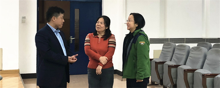 天学网丁总(左)老师和黄丽梅(中)、尹粉玉(右)老师交流合作事宜