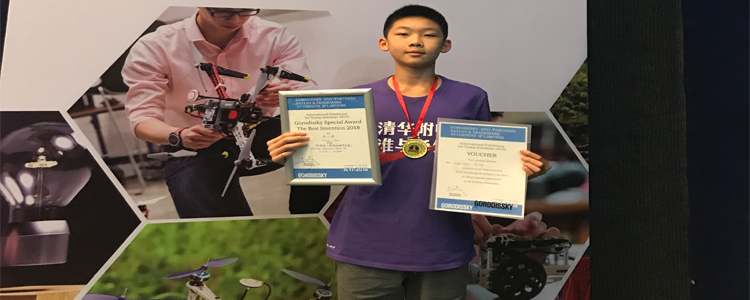 bg真人娱乐初17级赵云琦同学获得世界青少年发明展金奖