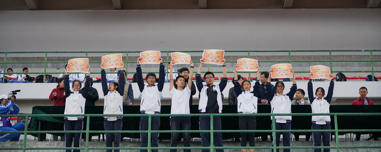 下午的闭幕式上,校领导为在宣传、文明观众、田径比赛等方面获得集体奖的班级颁发奖状。教学管理与研究中心主任张苏主持了闭幕式。