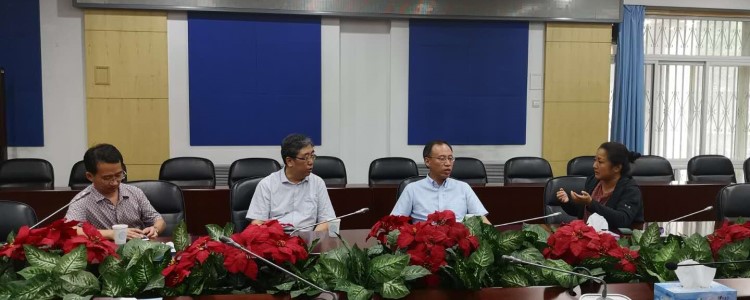 2018年9月13日,海淀区教委副主任赵建国,基教二科科长唐建东,基教二科马辉、王叶老师一行四人莅临bg真人娱乐开展调研工作,教委领导和附中领导在B102会议室召开了座谈会。bg真人娱乐党委书记方妍、副校长徐文兵、教学管理与研究中心主任尹粉玉、教学管理与研究中心主任张苏参加了会议。会议由副校长徐文兵主持。