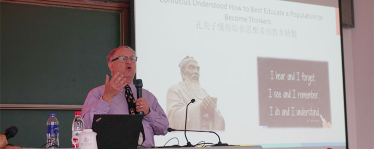 随后,清澜山学校学术校长Larry Tash与大家分享了中西合璧的教育管理心得。他谈到教育的精髓是培养思考者,面对一个变化的21世纪,学校的愿景是引领学生了解自己,获得社交技能、情感和身体的全面发展,充满自信地迎接未来的挑战。以学生的培养目标为基础,他强调了教育领导者、管理者应具备的素质以及如何营造良好的学校管理环境。