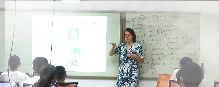 来自于丹麦的Janneke老师向同学们介绍了微生物学(Microbiology),重点介绍了微生物类别中的粘菌(Slime mold),微生物学之父,21世纪的微生物学,微生物学与环境,微流控技术在土壤微生物生态学研究中的应用,土壤芽孢杆菌的群体行为。