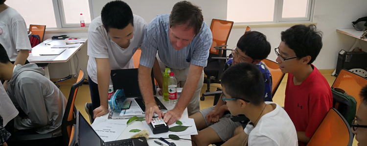 John Woodwell为学生开设了题为“Physics of Remote Sensing”的地理学课程。该课程充分利用了STEM教育的理念。在课程前期,John讲解了“Vostok core”、黑体辐射等与全球气候变暖的相关知识,并指导大家做了两个相关的实验,并讲解了一个数学建模软件——Stella的使用方法。随后,他启发大家结合学习到的知识,设计与光的反射相关的项目方案并在项目进行中给予帮助。最后大家分组完成项目,并进行全英文的项目汇报展示。在课程中,学生们的热情被充分激发出来,设计出不少有创意的项目。