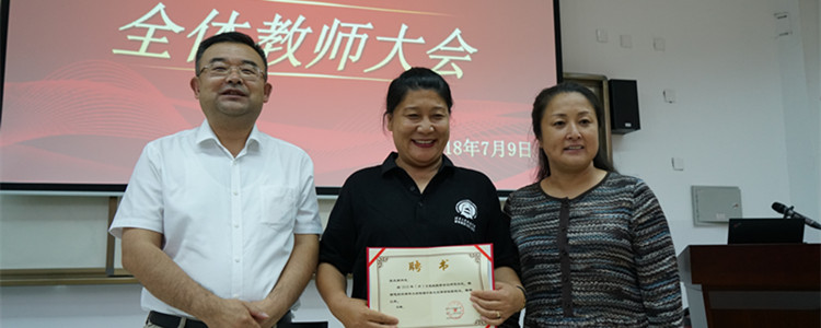 7月9日,bg真人娱乐党委书记方妍来到文安驿学校,为老师们做“我们·教育——漫谈新时代青年同仁的成长”报告并出席下午文安驿学校全体教师大会,代表bg真人娱乐党政班子向新任命的文安驿校领导颁发聘书。参加报告的有文安驿学校全体教师以及正在这里进行2018bg真人娱乐一体化学校新教师培训的老师们。一同出席下午文安驿学校全体教师大会的有延川县县委常委、纪委书记、监察委主任王军,bg真人娱乐副校长白雪峰、徐文兵、赵鸿雁,文安驿学校执行校长寇晓东,副校长张亚男、张少峰、党支部副书记解礁。此行立足附中基础教育特色,支援文安驿学校建设,是bg真人娱乐党委贯彻落实党的十九大精神,深化“两学一做”学习教育,引导教职工党员坚定理想信念,悟初心、守初心、践初心系列活动之一。