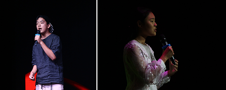 十佳歌手主持人C1608纪弘泽(右)、初1614班阴子悦(左)