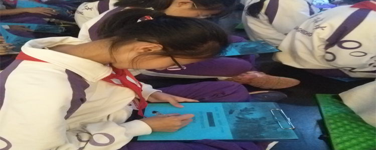 学生认真完成抗日知识任务单