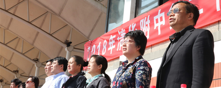 参加开幕式的领导与全场师生一起升国旗唱国歌