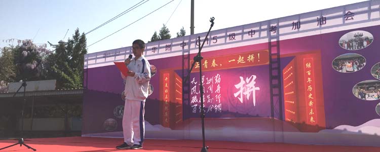 首先,学生代表张添淇用激情澎湃的发言,带着同学们共同回顾了初中三年的学习与生活,道出了对于中考的憧憬与希望,并表达了努力奋进,铸就辉煌的决心和勇气。