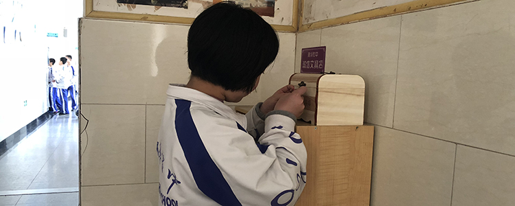 在文具店的一侧是一本意见簿,大家可通过意见簿给“诚信文具店”提出更好的建议,促进文具店的积极改善,意见簿的设立提升了学生们的主人翁意识;对负责“诚信文具店”的初中秘书处同学来说也是一种支持,促使他们更加积极地完善“诚信文具店”,更好地为大家提供便利。从“诚信文具店”的运营情况来看,结果是可喜的,运营到现在大约一个月的时间,同学们都能够按照规定购买文具,没有出现过拿了物品而没有付钱的情况。