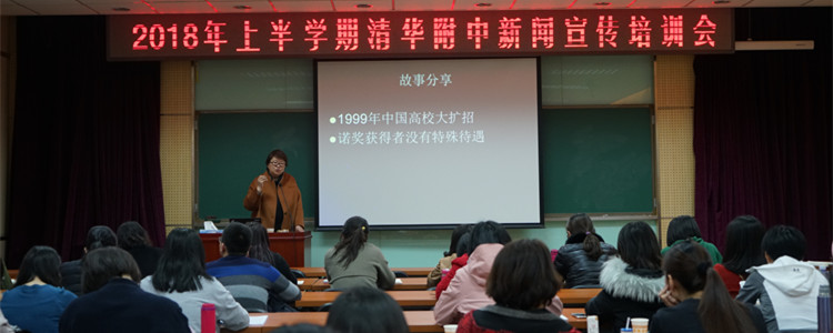 4月4日下午,bg真人娱乐于培训楼二楼会议室召开2018年上半年宣传工作培训会。此次培训会特邀清华大学《新清华》主编卢小兵老师,为全校各部门以及bg真人娱乐一体化学校的50多位兼职新闻通讯员进行新闻宣传工作的培训。会议由党委副书记张洁主持。