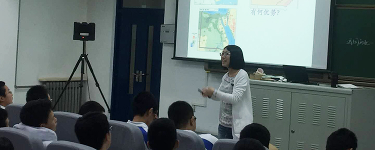 赵习、伊娜和谷丰三位年轻老师则以“干旱地区的农业”为主题,分别开设了初二年级新授课《走进干旱的西北》、初三年级复习课《干旱、半干旱地区的农业》和高三年级复习课《干旱地区的农业发展》。面对不同学段的学生,老师们采取了从认识到归纳,最终达到灵活运用的三位一体教学方式。在课程设计上,对课本材料进行优化整合,课堂更加连贯高效,具备知识性、趣味性和文化性。