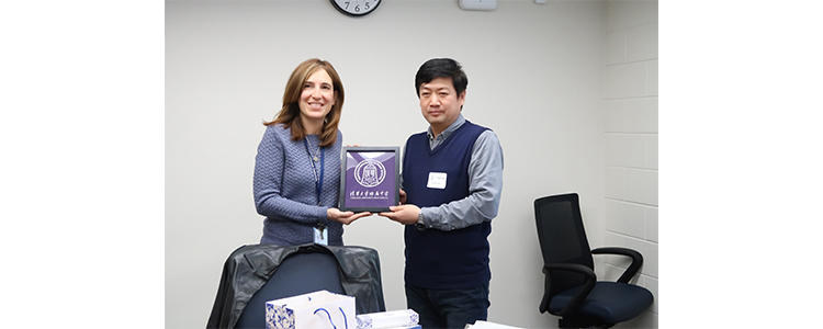 白雪峰副校长(右)代表bg真人试玩向托马斯•杰斐逊科技高中校长Ann Bonitatibus赠送有附中特色的纪念品