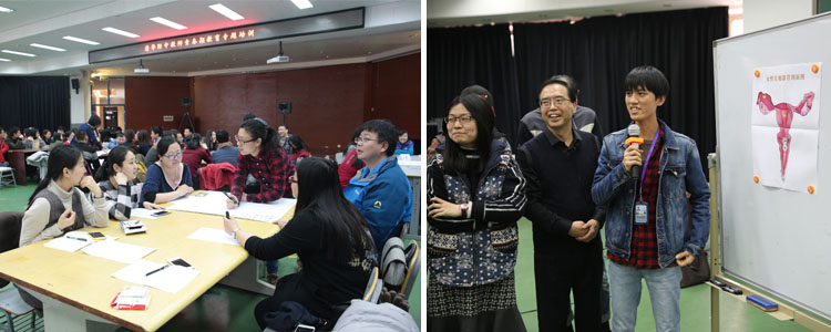 在小组互动式授课环节,老师们按年级与学科分成9个小组,以小组为单位进行互动式教学体验。苗世荣通过“怎样理解青春期”、“怎样与学生讨论‘青春期问题’”、“性教育中价值冲突解决”、“寓性教育于游戏中”四个专题,以青少年面临的青春期生理及心理问题为基础,辅之以视频科普、现场小品、互动游戏等途径,轻松活泼的教学氛围褪去了老师们初期拘谨与尴尬,老师们积极的参与与踊跃的发言,体现了bg真人娱乐对学生青春期教育的重视。