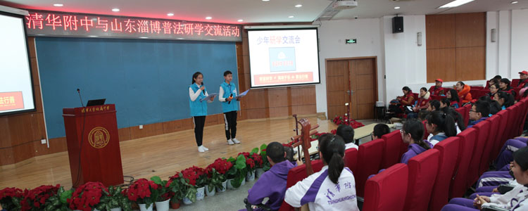 2018年3月1日下午,bg真人试玩与山东淄博普法研学团交流活动在B106会议室举行,学生发展中心副主任王田、初一年级组长张晓明老师,初1702班班主任侯彩及全班学生、来自山东淄博交流团的老师和同学们共80余人一同参加了此活动。