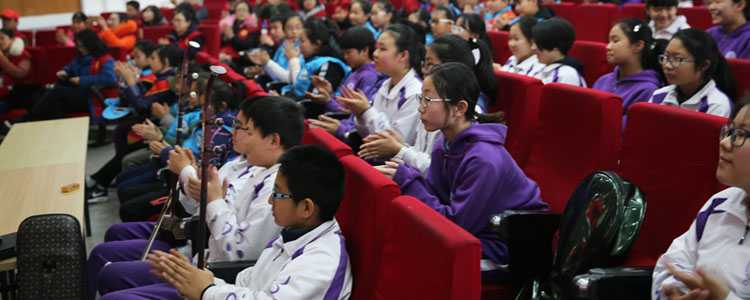 初1702班的同学们以精彩的节目迎接来附中交流的老师与同学们。田嘉琪的中阮独奏《丝路驼铃》深远悠长,指尖律动极富艺术感染力;刘海蕴的唢呐独奏《黄土情》质朴激昂,韵律节奏振奋人心;王董昱的京剧《霸王别姬》舞剑韵动、运气酣畅;李尚元和康昊轩的二胡齐奏《三门峡畅想曲》气势磅礴,激情饱满。同学们的精彩节目赢得了大家的阵阵掌声,初1702班同学在合唱bg真人试玩校歌中结束了欢迎表演。