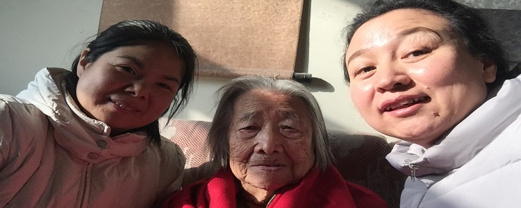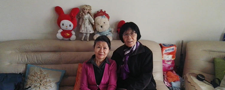 离退休党支部书记张蕴环老师(右)看望李黎老师
