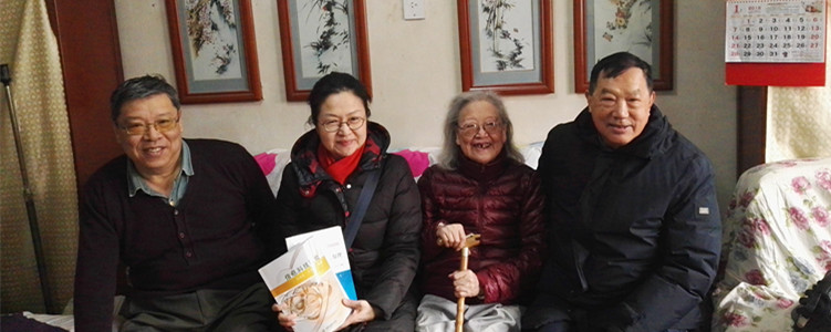 图片5:朱培老师(左2)赵恩宪(右1)看望尚复珍老师(右2)