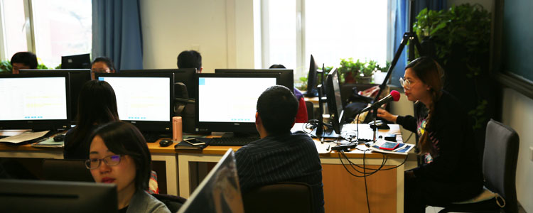 李天爽老师(右1)讲解综评系统操作