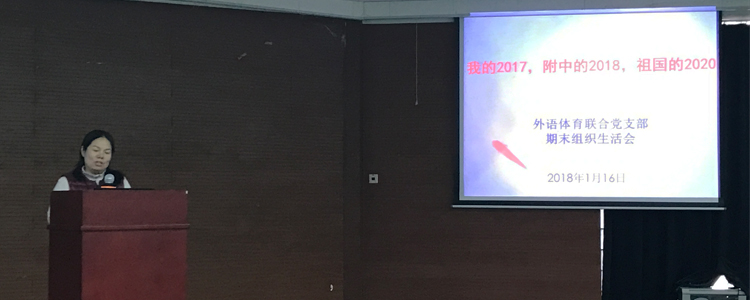 2018年1月16日下午,bg真人娱乐外语与体育教研组联合党支部在多功能厅开展期末特色组织生活,以“我的2017、附中的2018、祖国的2020”为题回顾过去、展望将来。党支部书记黄丽梅主持活动,支部党员25人、体育教研组组长陈雄伟以及来自外语教研组和体育教研组的6位自愿参加的教师共32人参加了本次组织生活。