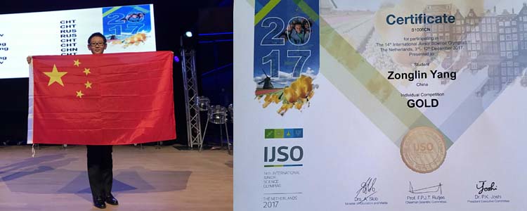 bg真人娱乐杨宗霖同学在国内两轮选拔考试中,成绩优异,获得2017IJSO中国赛区一等奖,与来自人大附中、北京市二中、景山中学共6名学生代表中国出战2017 IJSO国际竞赛。