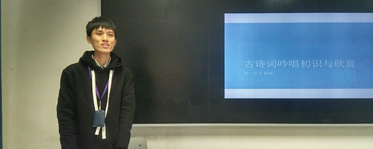 紧接着,初一语文组青年教师林加和大家分享古诗词吟唱初识与欣赏,深入浅出,系统讲解了诗歌吟唱的含义,还演绎了生动有趣的生活实例,如《甄嬛传》里的情节等。