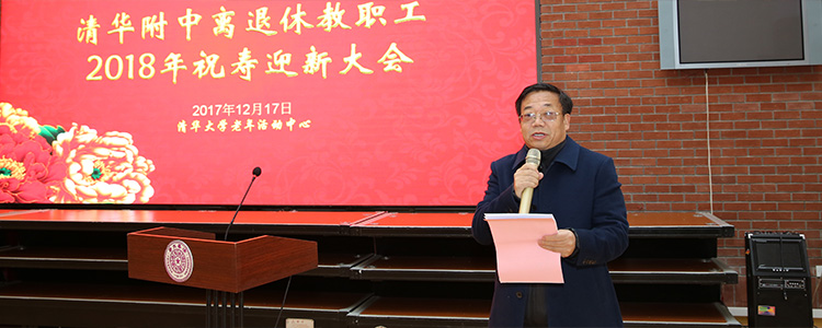 清华大学离退休处处长刘秀成最后讲话。在向全体离退休老同志表达亲切慰问和新年祝福后,他高度肯定附中的离退休工作,希望附中坚持这种尊老爱老的优良文化传统,继续为广大离退休同志服务好。