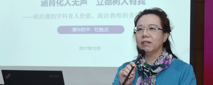 海淀区教育委员会主任陆云泉做总结发言,指出,杜毓贞老师作为一名思想政治教师,凭着她对教育事业深切的情怀,对学生热烈的热爱、对教书育人的崇高追求和对政治学科的独特理解,将思想政治课程定位为帮助学生确立思想政治方向、增强社会理解和参与能力、提高法律与道德修养的公民教育课。从她身上,我们也看到了成为一位名师所应具备的特质:第一,高尚的教育情怀打好人生底色。教育情怀是崇高而坚定的教育理想,是对教育的执着,对学生的热爱。第二,独特的教育思想引领发展发向。第三,高超的教育能力成就事业辉煌。第四,突出的教育业绩打造金色名片。他表示,目前全面落实党的十九大精神,深化教育领域综合改革,实现教育强国梦,必须依靠高素质专业化创新型的教师队伍,望进一步加强名师队伍建设,加大对名师的培养力度,打造教育人才聚集高地,最终为海淀教育优质均衡发展提供不竭的人才资源。