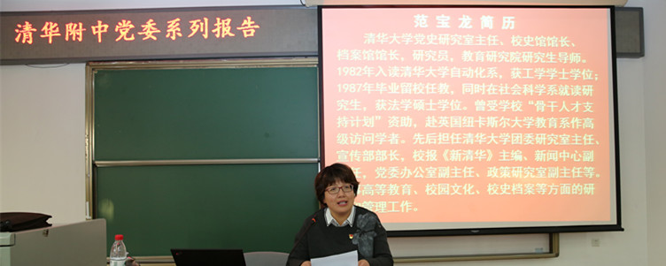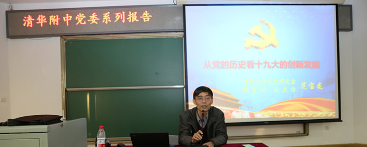 12月7日下午,bg真人试玩党委组织召开学习党的十九大精神专题报告会,邀请清华大学党史研究室主任、校史馆馆长、档案馆馆长、教育研究院研究生导师、研究员范宝龙做“从党的历史看党的十九大的创新发展”专题报告。bg真人试玩本部全体党员,bg真人试玩上地学校全体教职工,业余党校学生约200余人参加学习。附中党委副书记张洁主持会议。