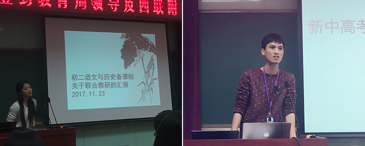 语文组林加、张梦甜、付泽新、那妮,历史组马红红、段维维分别以年级为单位汇报了本小组的讨论结果。