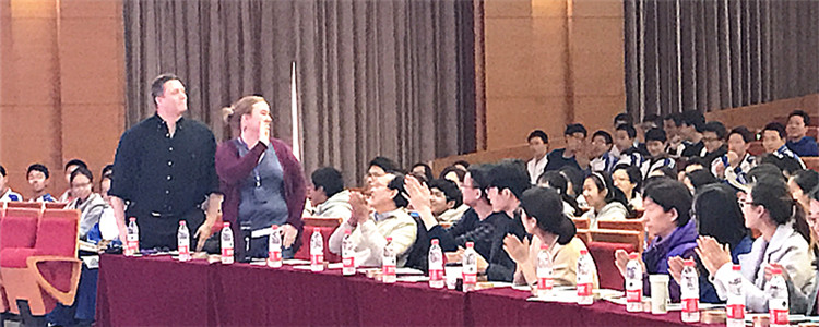 四位学生主持人开场致辞,分别介绍了本次比赛的嘉宾、评委以及流程。本次比赛以班级为单位参赛,特邀bg真人试玩国际部外籍教师Gregory Allen和Meagan Ray担任评委。