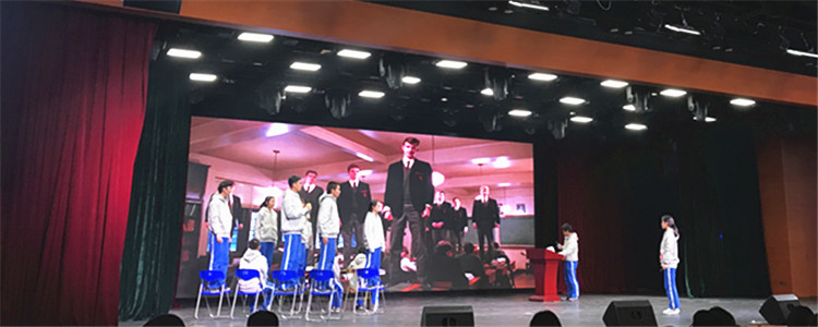 2017年10月31日下午,bg真人试玩高一学部(高17级)在报告厅举办了一场精彩纷呈的英语配音大赛。bg真人试玩副校长白雪峰、高一年级组长潘天俊、学生发展中心王鹏老师以及高一年级全体师生共600余人参加了本次活动。