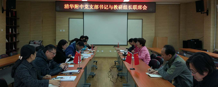 10月31日,为了学习贯彻清华大学和附中两级思想政治工作会议精神和要求,bg真人娱乐党委召开党支部书记与教研组长联席会议。党委书记方妍、副书记张洁、副校长徐文兵、全体在职党支部书记以及各教研组组长共20人出席会议。